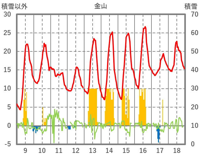 | 日 | 時 | 気温 | 降水 | 風向/風速 | 日照 | 積雪 | 降雪 |