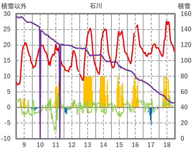 | 日 | 時 | 気温 | 降水 | 風向/風速 | 日照 | 積雪 | 降雪 |