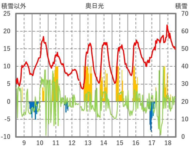 | 日 | 時 | 気温 | 降水 | 風向/風速 | 日照 | 積雪 | 降雪 |