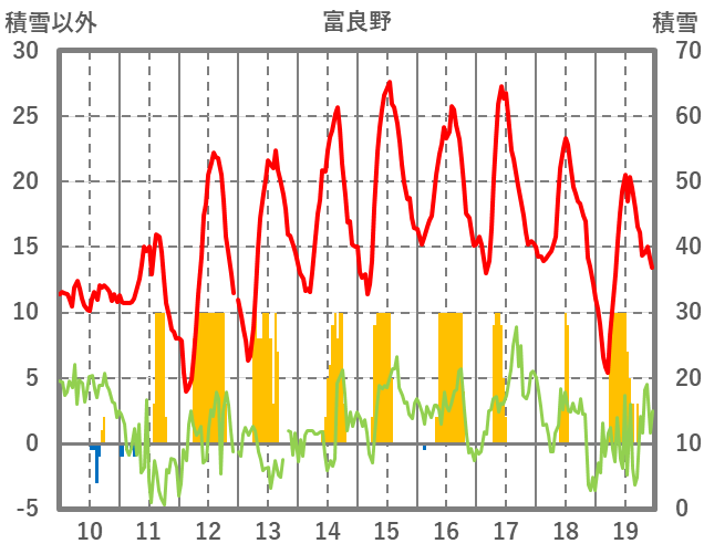 | 日 | 時 | 気温 | 降水 | 風向/風速 | 日照 | 積雪 | 降雪 |
