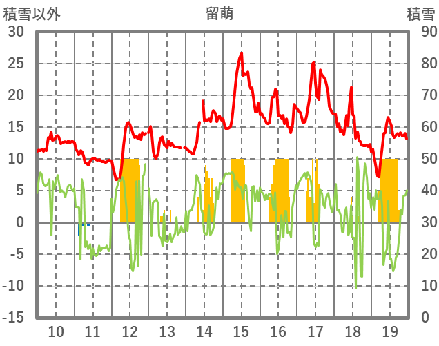 | 日 | 時 | 気温 | 降水 | 風向/風速 | 日照 | 積雪 | 降雪 |