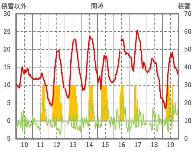 | 日 | 時 | 気温 | 降水 | 風向/風速 | 日照 | 積雪 | 降雪 |