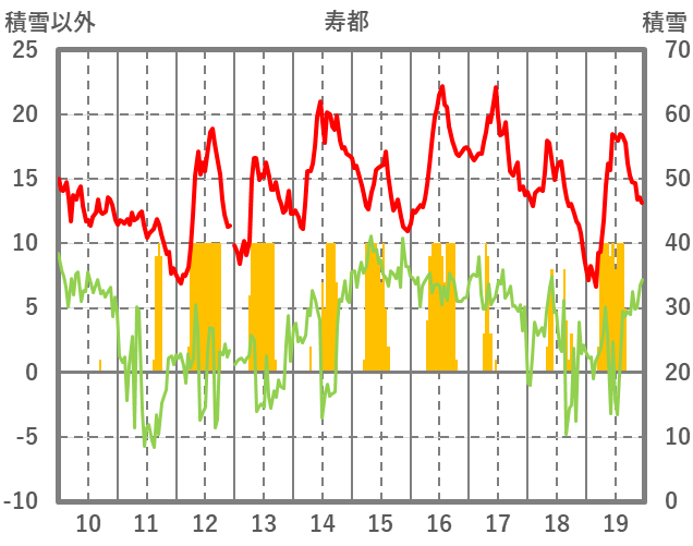 | 日 | 時 | 気温 | 降水 | 風向/風速 | 日照 | 積雪 | 降雪 |