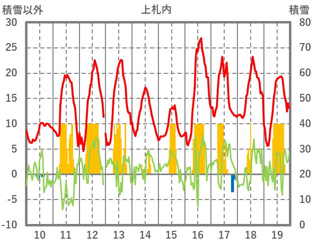 | 日 | 時 | 気温 | 降水 | 風向/風速 | 日照 | 積雪 | 降雪 |