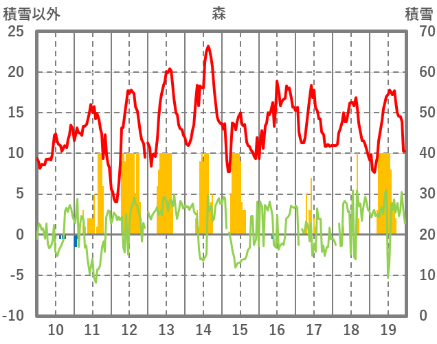 | 日 | 時 | 気温 | 降水 | 風向/風速 | 日照 | 積雪 | 降雪 |