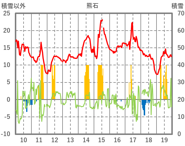 | 日 | 時 | 気温 | 降水 | 風向/風速 | 日照 | 積雪 | 降雪 |