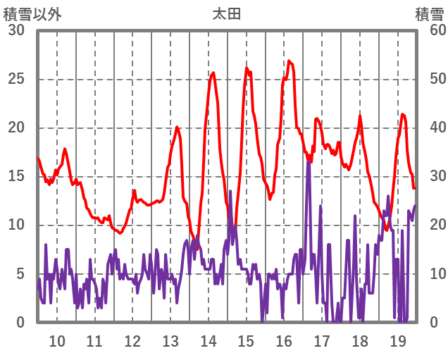 | 日 | 時 | 気温 | 降水 | 風向/風速 | 日照 | 積雪 | 降雪 |