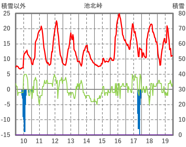 | 日 | 時 | 気温 | 降水 | 風向/風速 | 日照 | 積雪 | 降雪 |