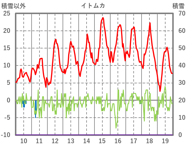| 日 | 時 | 気温 | 降水 | 風向/風速 | 日照 | 積雪 | 降雪 |