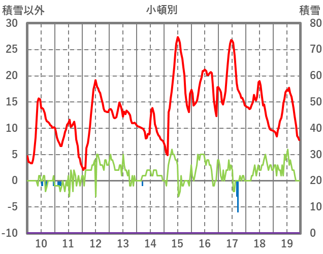 | 日 | 時 | 気温 | 降水 | 風向/風速 | 日照 | 積雪 | 降雪 |