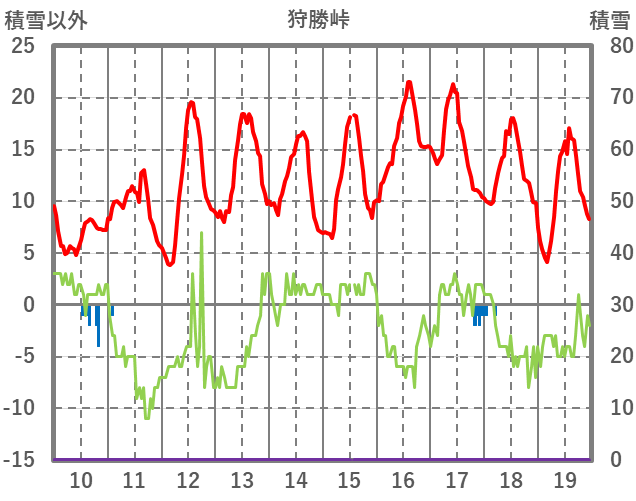 | 日 | 時 | 気温 | 降水 | 風向/風速 | 日照 | 積雪 | 降雪 |