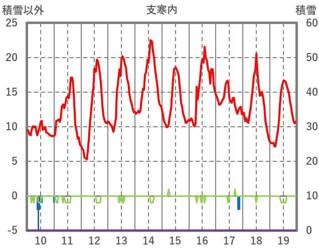 | 日 | 時 | 気温 | 降水 | 風向/風速 | 日照 | 積雪 | 降雪 |