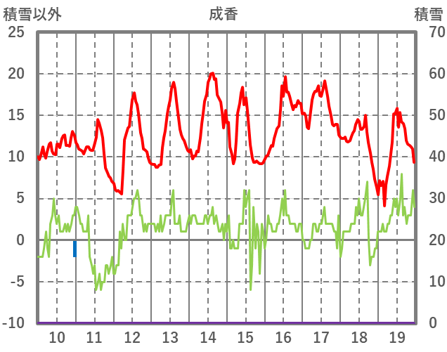 | 日 | 時 | 気温 | 降水 | 風向/風速 | 日照 | 積雪 | 降雪 |