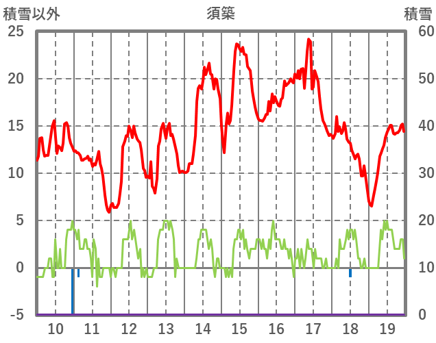 | 日 | 時 | 気温 | 降水 | 風向/風速 | 日照 | 積雪 | 降雪 |