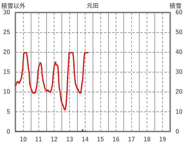 | 日 | 時 | 気温 | 降水 | 風向/風速 | 日照 | 積雪 | 降雪 |
