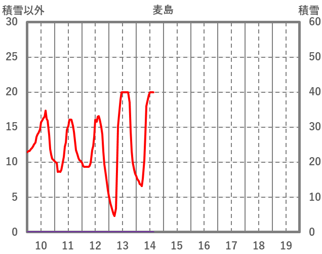| 日 | 時 | 気温 | 降水 | 風向/風速 | 日照 | 積雪 | 降雪 |
