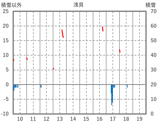 | 日 | 時 | 気温 | 降水 | 風向/風速 | 日照 | 積雪 | 降雪 |
