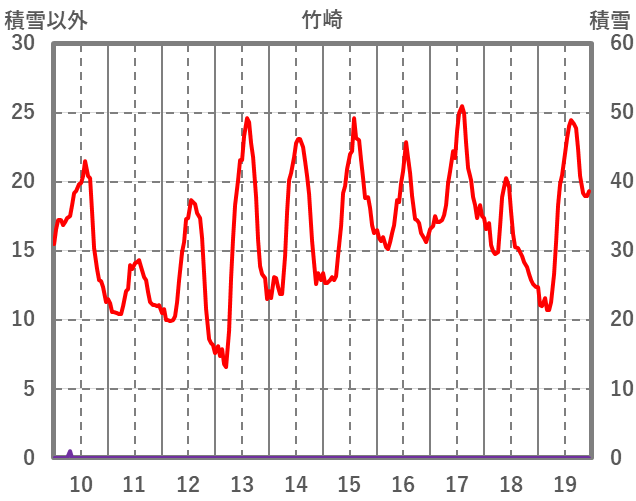 | 日 | 時 | 気温 | 降水 | 風向/風速 | 日照 | 積雪 | 降雪 |