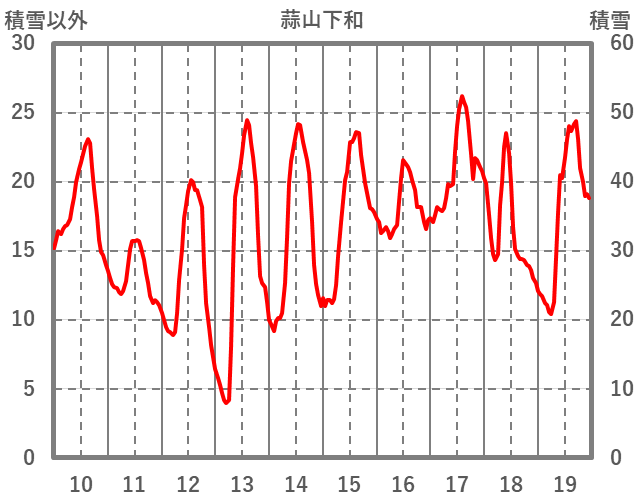 | 日 | 時 | 気温 | 降水 | 風向/風速 | 日照 | 積雪 | 降雪 |