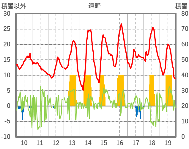 | 日 | 時 | 気温 | 降水 | 風向/風速 | 日照 | 積雪 | 降雪 |