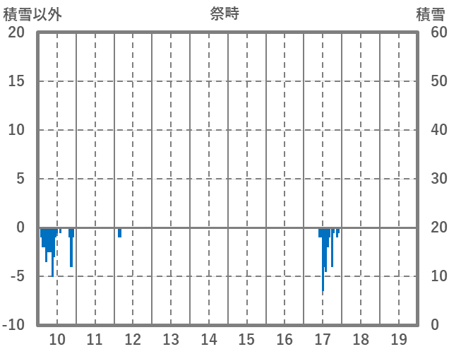 | 日 | 時 | 気温 | 降水 | 風向/風速 | 日照 | 積雪 | 降雪 |