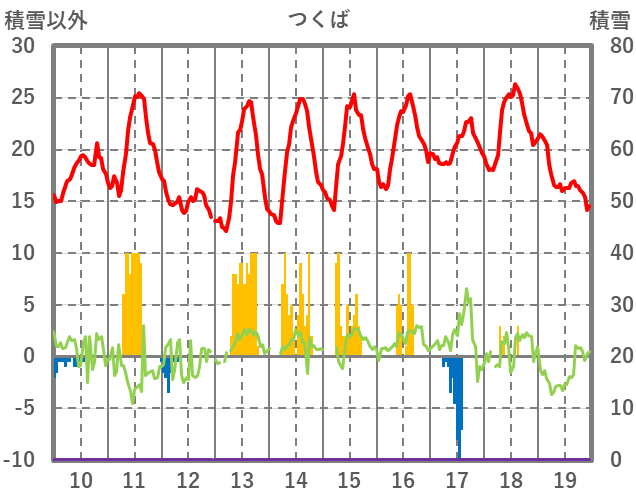 | 日 | 時 | 気温 | 降水 | 風向/風速 | 日照 | 積雪 | 降雪 |