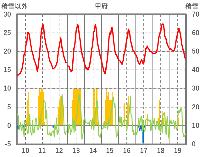 | 日 | 時 | 気温 | 降水 | 風向/風速 | 日照 | 積雪 | 降雪 |