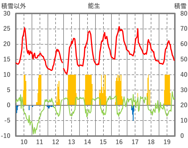 | 日 | 時 | 気温 | 降水 | 風向/風速 | 日照 | 積雪 | 降雪 |