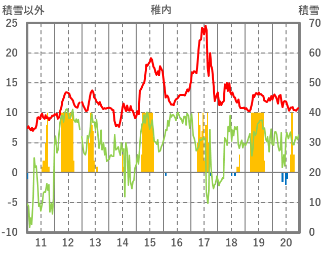 | 日 | 時 | 気温 | 降水 | 風向/風速 | 日照 | 積雪 | 降雪 |