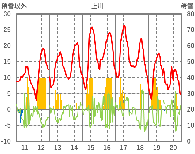 | 日 | 時 | 気温 | 降水 | 風向/風速 | 日照 | 積雪 | 降雪 |