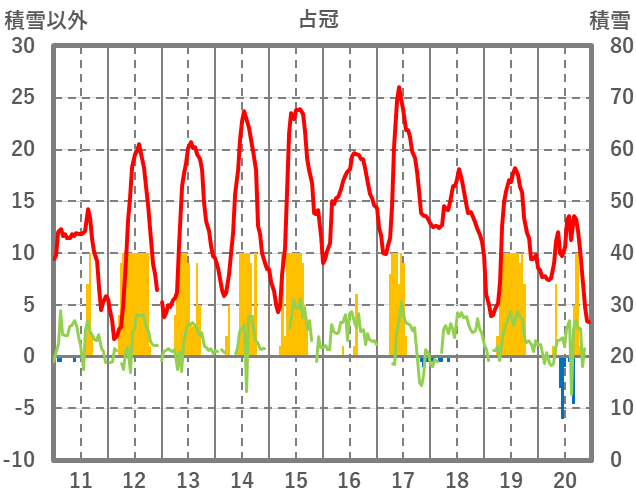 | 日 | 時 | 気温 | 降水 | 風向/風速 | 日照 | 積雪 | 降雪 |