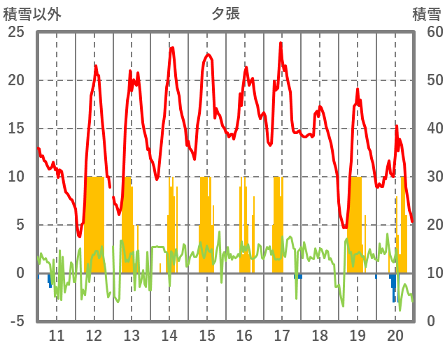 | 日 | 時 | 気温 | 降水 | 風向/風速 | 日照 | 積雪 | 降雪 |