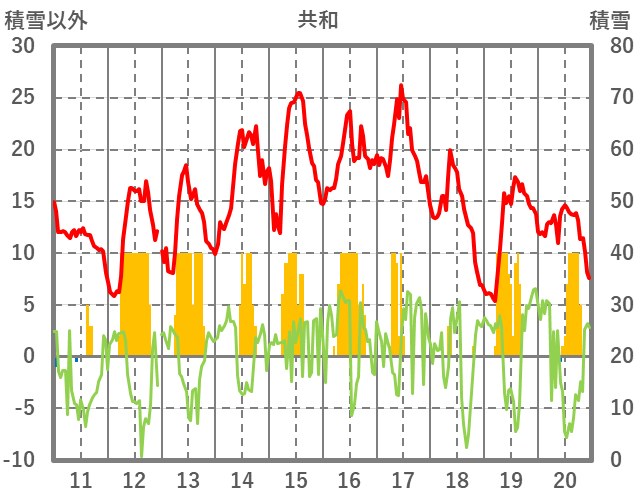 | 日 | 時 | 気温 | 降水 | 風向/風速 | 日照 | 積雪 | 降雪 |