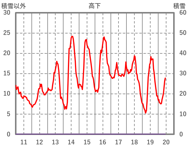 | 日 | 時 | 気温 | 降水 | 風向/風速 | 日照 | 積雪 | 降雪 |