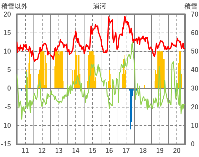| 日 | 時 | 気温 | 降水 | 風向/風速 | 日照 | 積雪 | 降雪 |