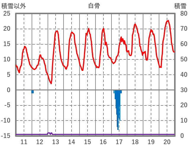 | 日 | 時 | 気温 | 降水 | 風向/風速 | 日照 | 積雪 | 降雪 |