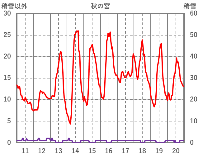 | 日 | 時 | 気温 | 降水 | 風向/風速 | 日照 | 積雪 | 降雪 |