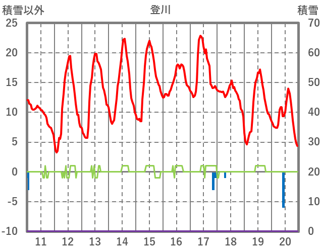 | 日 | 時 | 気温 | 降水 | 風向/風速 | 日照 | 積雪 | 降雪 |