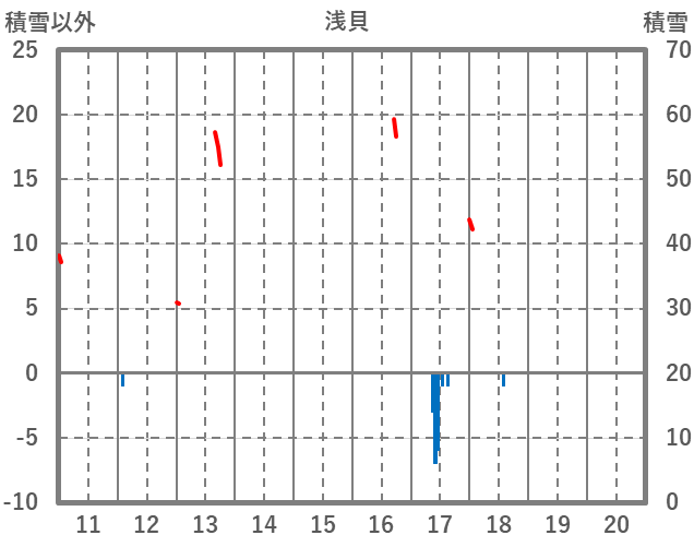 | 日 | 時 | 気温 | 降水 | 風向/風速 | 日照 | 積雪 | 降雪 |