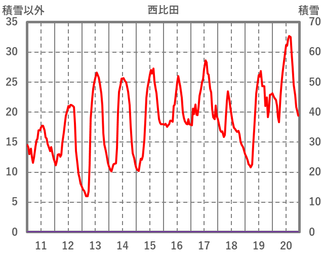 | 日 | 時 | 気温 | 降水 | 風向/風速 | 日照 | 積雪 | 降雪 |