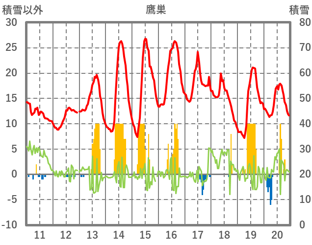 | 日 | 時 | 気温 | 降水 | 風向/風速 | 日照 | 積雪 | 降雪 |