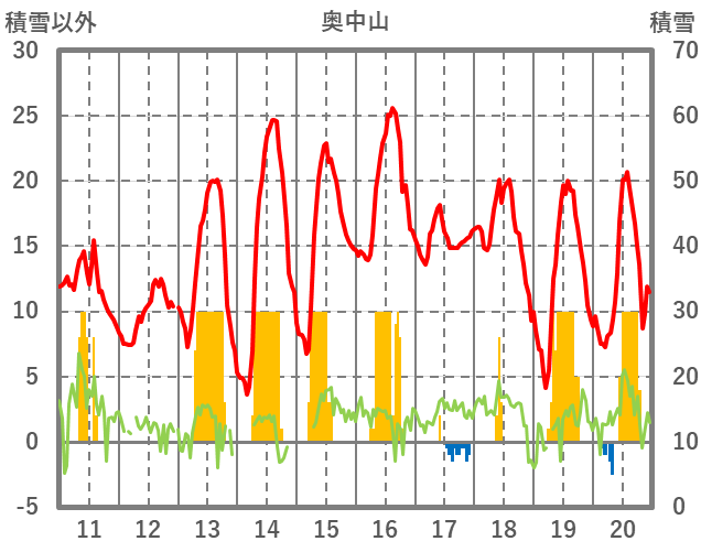 | 日 | 時 | 気温 | 降水 | 風向/風速 | 日照 | 積雪 | 降雪 |