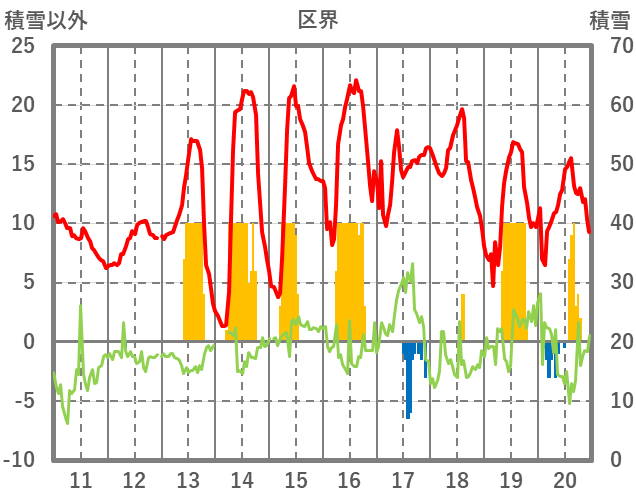 | 日 | 時 | 気温 | 降水 | 風向/風速 | 日照 | 積雪 | 降雪 |