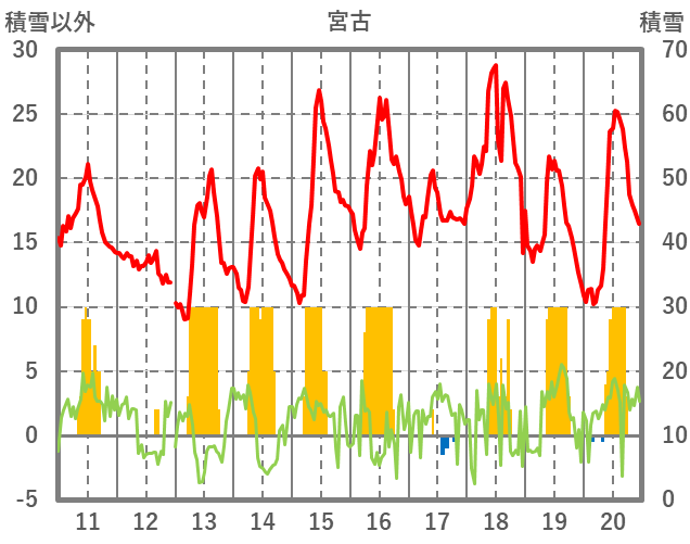 | 日 | 時 | 気温 | 降水 | 風向/風速 | 日照 | 積雪 | 降雪 |