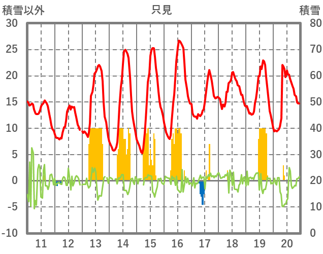 | 日 | 時 | 気温 | 降水 | 風向/風速 | 日照 | 積雪 | 降雪 |