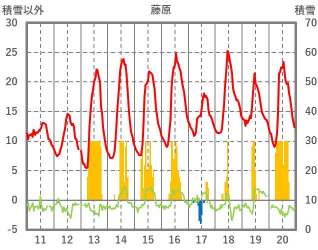 | 日 | 時 | 気温 | 降水 | 風向/風速 | 日照 | 積雪 | 降雪 |