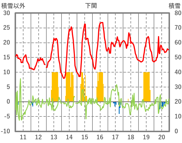 | 日 | 時 | 気温 | 降水 | 風向/風速 | 日照 | 積雪 | 降雪 |