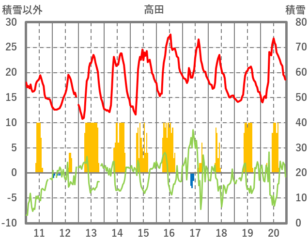 | 日 | 時 | 気温 | 降水 | 風向/風速 | 日照 | 積雪 | 降雪 |