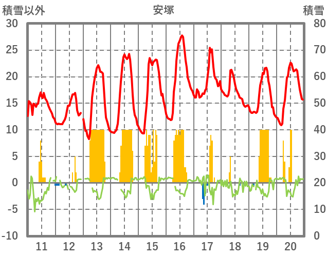 | 日 | 時 | 気温 | 降水 | 風向/風速 | 日照 | 積雪 | 降雪 |