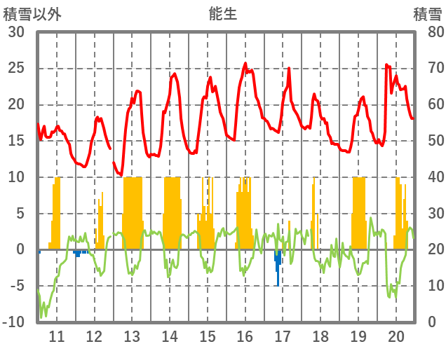 | 日 | 時 | 気温 | 降水 | 風向/風速 | 日照 | 積雪 | 降雪 |